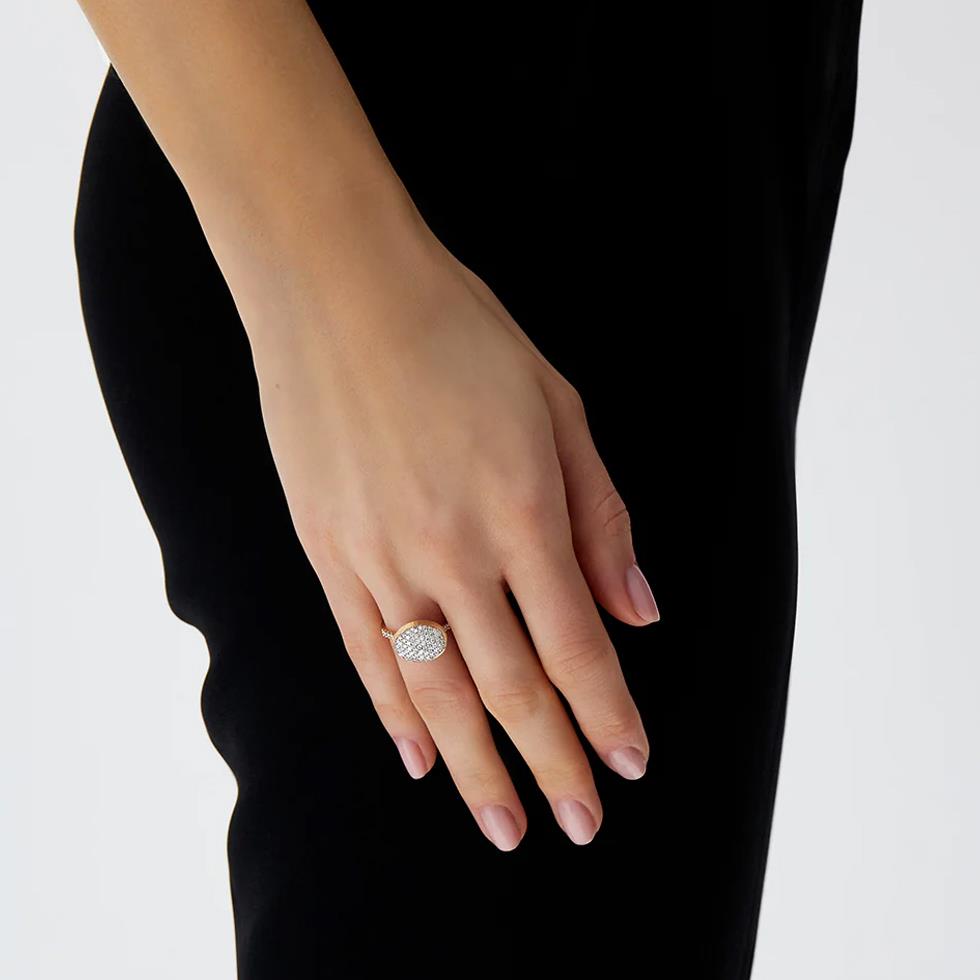 Realizzato in oro 18kt, questo anello è impreziosito da un pavè di diamanti che crea sofisticati giochi di luce, offrendo un'eleganza senza tempo. Indossalo da solo per un tocco di raffinatezza o abbinalo ad altri anelli colorati della collezione Boules, come Rosolio, Lattementa, Anice o Violetta, per creare la tua combinazione ideale.