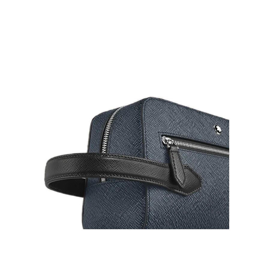 Per gli affari o per le vacanze, questa pochette è un must-have da viaggio. Realizzata in pelle Sartorial goffrata in una raffinata combinazione bicolore di blu e nero classici, presenta un interno spazioso e un esterno con tasca con cerniera per i tuoi oggetti essenziali. Grazie ai manici in pelle, puoi portarla a mano o riporla in una borsa da viaggio.