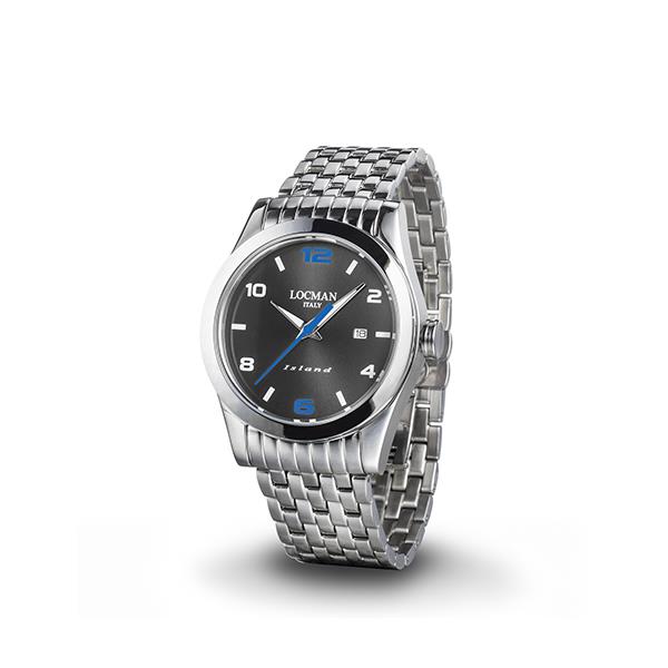 ISLAND ACCIAIO SOLO TEMPO ACC/ACC QUADRANTE NERO INDICI BLU - LOCMAN