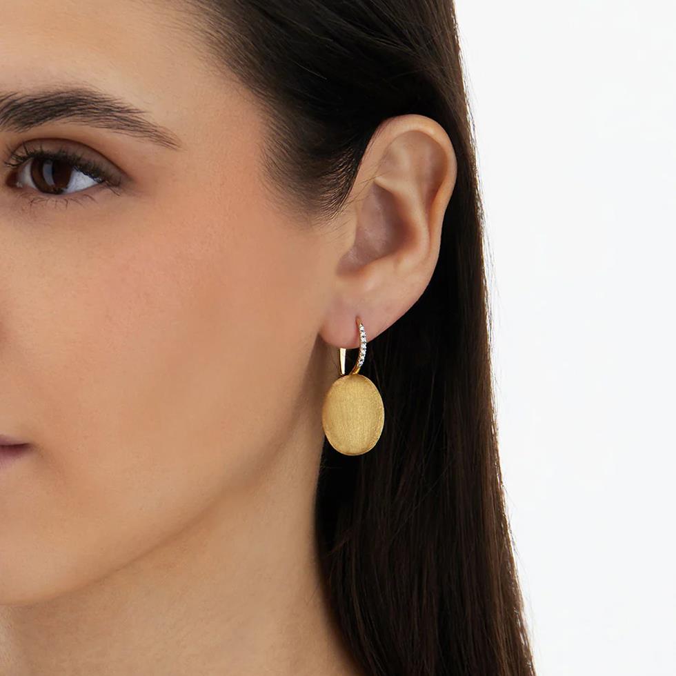 Le nostre “ciliegine” in oro 18kt e diamanti, questi orecchini dal sapore intramontabile sono diventati tra i più iconici dei gioielli Nanis. Estremamente eleganti se portati da soli, più contemporanei se abbinati alle loro versioni più piccole, queste boule incise a mano illuminano e affascinano, come poesie senza tempo.