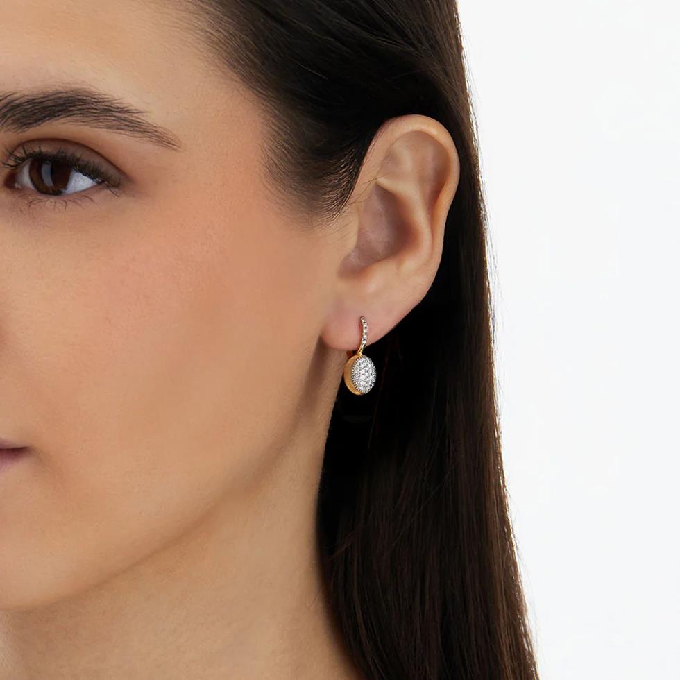 Due "ciliegine" in diamanti abbracciate dall’oro 18kt inciso a mano, capolavoro di artigianato artistico e di creatività.