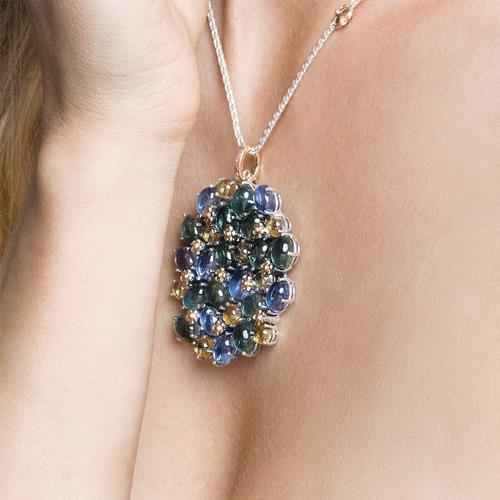 POSITANO - CIONDOLO IN  ARGENTO E ORO 9KT CONQUARZI  IDROTERMALI - DE NOBILI